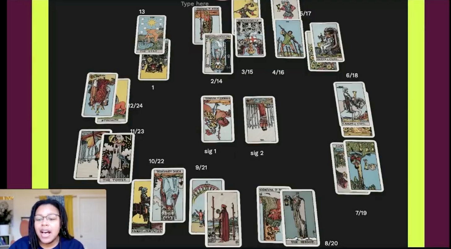 I encouraged the attendees of the workshop to develop their own theory of the year spread. This was not an invitation to announce what they saw, but an opportunity to scrutinize our group pull over the course of the year. I didn’t love what I saw laid out before us: for Sept-November 2025, we pulled the Six of Swords reversed and The Tower. The primary figures of our year were Knight of Wands and Eight of Swords, both reversed.
